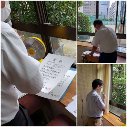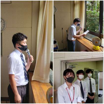 本日から2学期が始まり、放送で始業式を行いました。校長先生から夏休みの表彰や皆さんが夏休みに補習や部活動で頑張っていたようす、また緊急事態宣言が発令され、3年生の修学旅行が再延期になること、体育大会のあり方について検討していることなどのお話がありました。