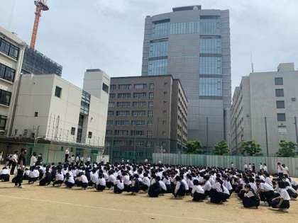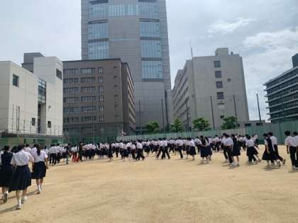 コロナ禍においての実施となりましたが、緊張感をもって粛々と取り組むことができました。さすが東中生です。運動場が工事のために狭くなっていますが、有事な時にはこの限られたスペースに避難することになります。9月1日が「防災の日」、来週は「防災週間」です。また、9月3日は「大阪880万人訓練」です。一人ひとりの高い防災意識が命を守る行動に繋がります。