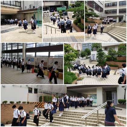 災害時に住んでいる地域ごとに班を編成し、下校しました。学年の枠を越えての班編成となっています。災害などの緊急時に役立てたいと思います。
