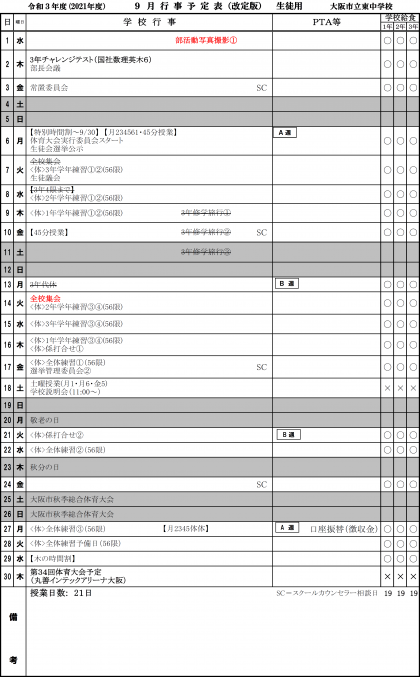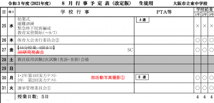 「8・9月行事予定(改訂版)」等を再度、掲載します。