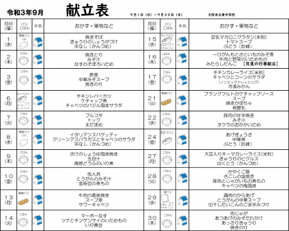 9月の給食献立はこちらをクリックするとご覧いただけます。