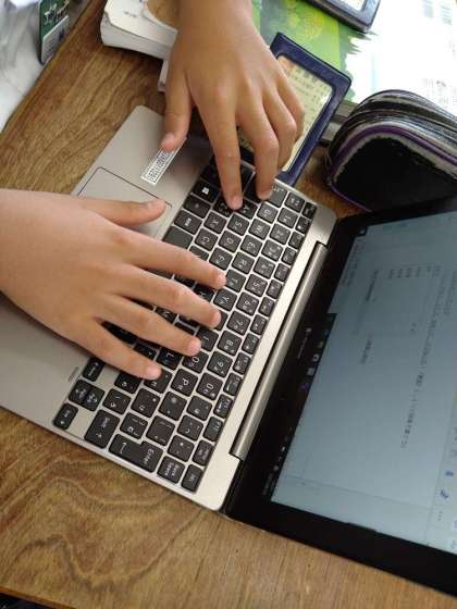 本日はタブレットを使い、夏休みに関しての文章を作成しました。