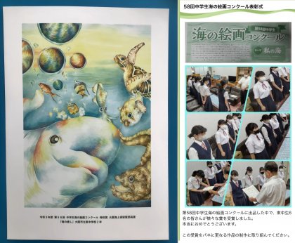 祝!! 美術部員作品 全国金賞!! 「第49回 我ら海の子展」「海の絵画コンクール」 作品名『海の癒し』