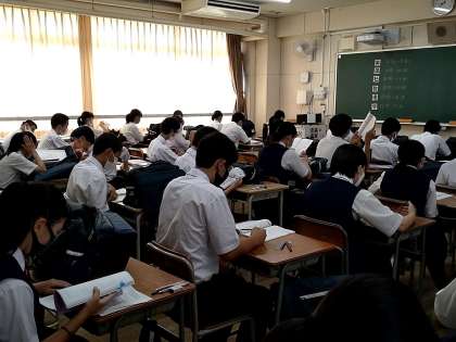 朝から各教室では、生徒たちが、教科書やノート・参考書などを見ながら各教科のポイントを再確認しています。