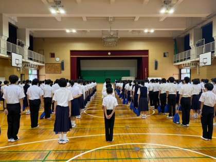 2学期最初の学年集会です。学級代表が朝から準備し、整列の練習もしていました。今日のように節目節目をしっかりと意識し、気持ちを新たに学校生活を送りましょう。