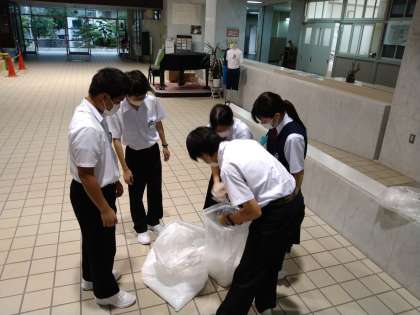 6月から実施している使い捨てコンタクトレンズの空ケース回収を整理しました。執行部のメンバーで重さを測定し、その成果に喜んでいます。