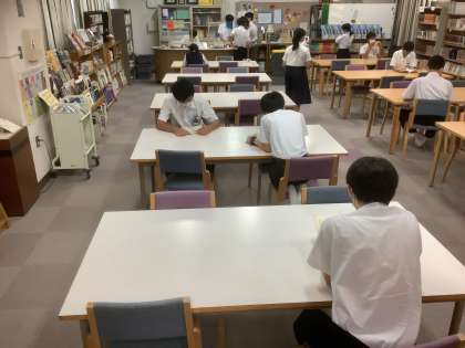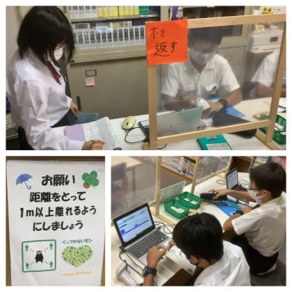今日も元気アップのボランティアの方と生徒の図書委員、本校教員が、感染症拡大防止の対策に気を配り、開館に尽力していただいています。雨のため、運動場が使えないこともあり、生徒たちが次々に来館し、静かに読書に勤しんだり、本を借りたり、返却したりしていました。