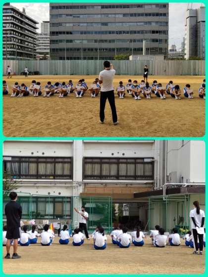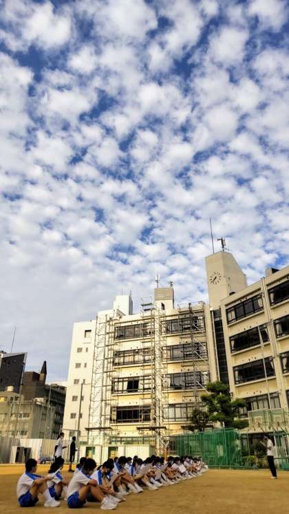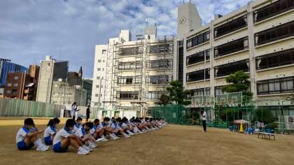体育大会実行委員会の皆さんは、先生の指示をもとに、これから各団に別れてグランド整備にかかります。