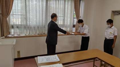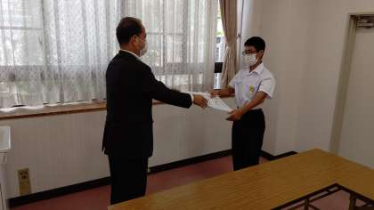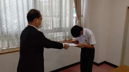 本日、9月4日(土)5日(日)に丸善インテック大阪プール(港区)で行われた大阪府学年別大会の表彰を校長先生にしていただきました。この大会では1年生が大活躍。フリーリレーで3位、個人では400m自由形で7位に入賞しました。その結果、総合1年の部で第2位になりました!