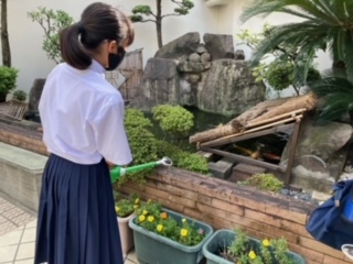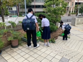 「水まきして帰ろう!」という元気な声が職員室まで聞こえてきました。誰かに言われてやるのではなく、自分から積極的にやる当番活動です。心に花が咲きますね。