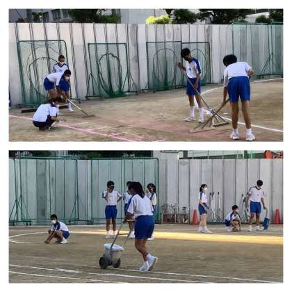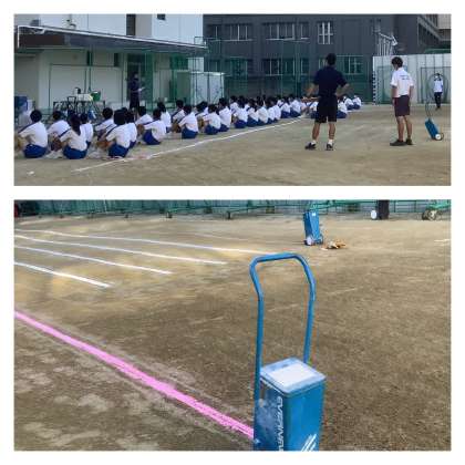 秋晴れのもと、体育大会実行員会のメンバーが早朝から活動しています。『出来ないことを嘆くより、今できることに全力で取り組む』。この姿勢は、先輩から受け継いだ伝統です。