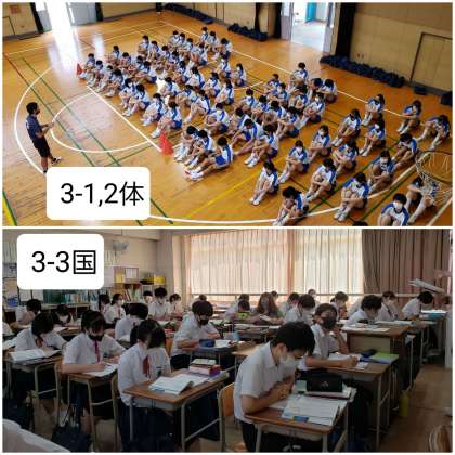朝晩は少し冷え込むくらいの気温となり秋の到来を感じさせる空となりましたが、日中はまだまだ暑い日が続くようです。本日の授業のようすです。体育では、体育大会の練習も始まっています。