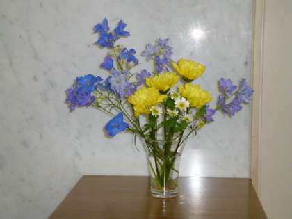 学校支援ボランティアの松本さんが、事務室、校長室、職員室前の下駄箱の台の上に、可愛い花々を生けてくれています。