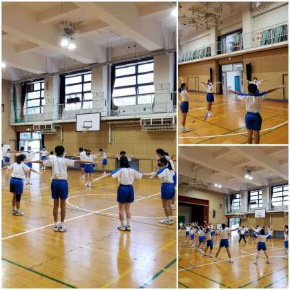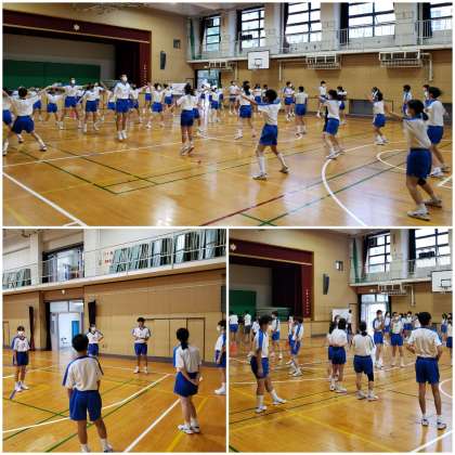 本日は朝から雨のため、体育館での取組となりました。朝早くから集まり東中体操の練習です。まずは委員が他の生徒の見本となるように練習してくれています。