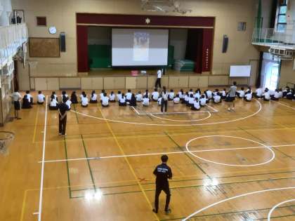 体育大会実行委員会の朝の活動も半分になろうとしています。今朝は生憎(あいにく)の雨模様。今日は、昨年度、大阪市中央体育館で体育大会を実施された西区の中学校の準備の様子からの写真と動画で当日の動きをシミュレーションしました。担当の先生からは、「予測して準備し行動することの大切さ」の話から活動が始まりました。コロナ禍で予測困難な時代、一人ひとりが知恵を出し合い、協力し、この状況を乗り越え、思い出に残る体育大会を実現しましょう。