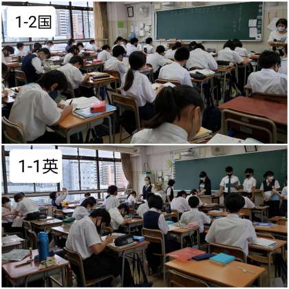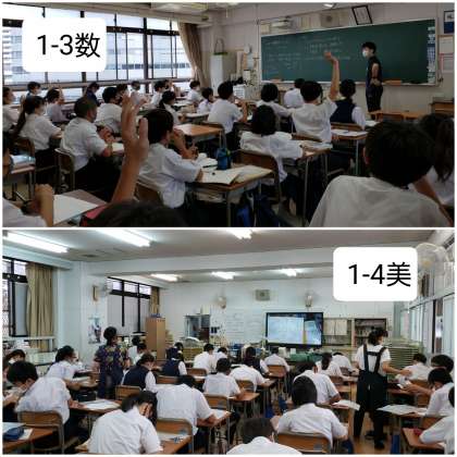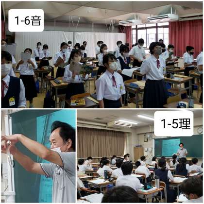 本日の授業のようすです。感染症対策をとりながら授業を行っています。