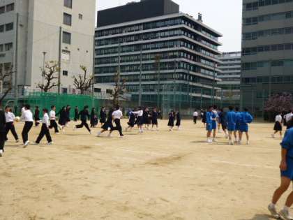 長く続いた雨のため、運動場が使用できなかった何日間、そのうっぷんを晴らすかのように、キラキラと太陽の光りが降り注ぐ中、東中生は元気に仲間と遊んでいます。
