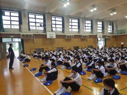 朝の学年集会で、学年主任の掛川先生からのお話がありました。
