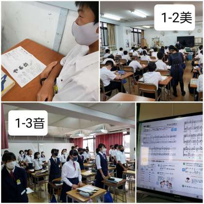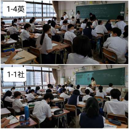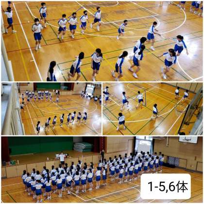台風14号が近づいてきており、朝から雨が降っています。本日の授業のようすです。体育大会の学年練習も中止になりましたが、体育館でリレーのバトン受け渡しの練習をしています。