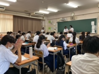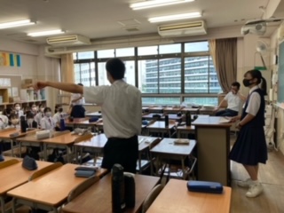 体育大会に向けて、3学年縦割りの応援団が練習を行いました。3年生の先輩が、1・2年生に教えに行きます。先輩の指示をしっかり聞いて、良い応援にしてください!