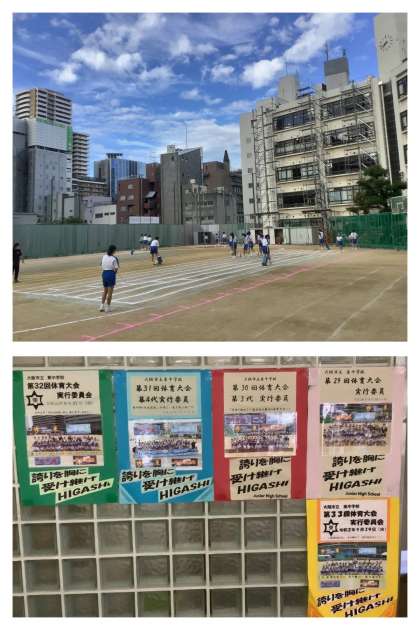 体育大会実行委員会の活動も残り5日。運動場のライン引きは1・2年生に任せて、3年生は、今年、購入したビブスの整理を行いました。広い大阪市中央体育館で遠くからでも学年とクラスがわかるように、3色(青・緑・黄色)のビブスに、クラスナンバーが大きくプリントされています。ビブスを着た東中生が、躍動する姿を見ることが楽しみです。