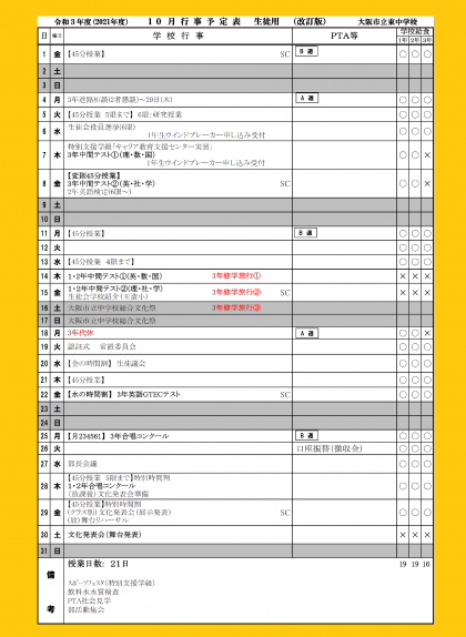 「10月行事予定表(改訂版)」はこちらをクリックしてご覧ください。
