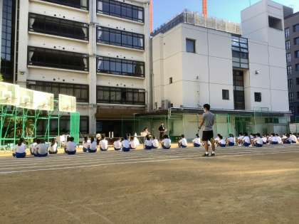 秋晴れに白い月が綺麗に見える朝を迎えました。体育大会3日前の朝です。今日も体育大会実行委員のメンバーが集合し取組を進めます。今日の全体練習では、630人余りの生徒たちのリーダーとして活躍することでしょう。明日と明後日の活動の仕上げは体育館にラインテープを貼る練習も加わります。いよいよ活動のフィナーレです。