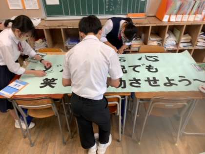 本日の放課後、修学旅行実行委員のメンバーで修学旅行のスローガン作りを行いました!