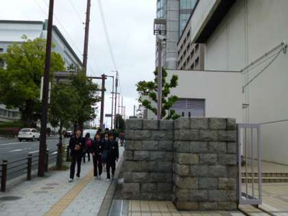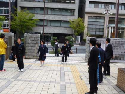 東中の周りは、官公庁をはじめ、大阪城公園、難波宮や歴史博物館、NHK放送局・ホール等の観光地も隣接し、ビジネス関係の方々や観光客の方々が、たくさん学校付近を往来します。一方、夕刻から夜にかけては逆に人通りが極端に少なくなります。