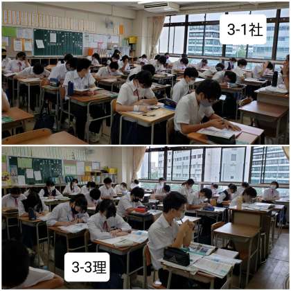 体育大会が終わり、疲れの残っている中での授業となっています。3年生は10月は中間テスト、修学旅行、文化発表会とまだまだ続きますので皆さん、しっかり頑張りましょう。