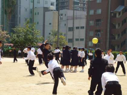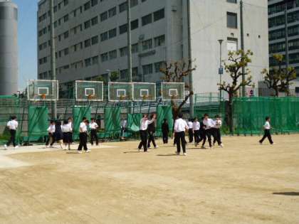 東中生は元気に遊んでいます。バスケットボール、バレーボール・・・