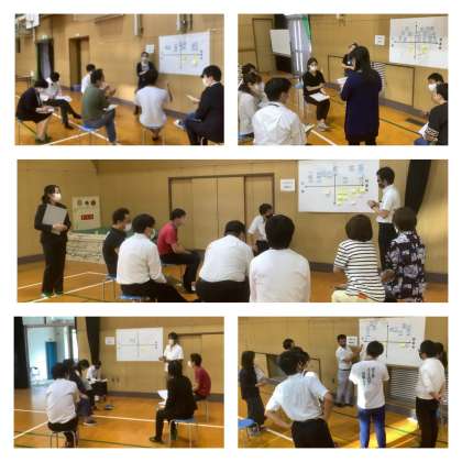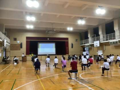 研究授業の後は、体育館で授業者の振り返り、授業ごとのグループに分かれての研究協議、最後に指導主事先生のご講評をいただきました。生徒たちの学びに負けない、先生方の学びの時間になりました。お越しいただきました先生方、ありがとうございました。