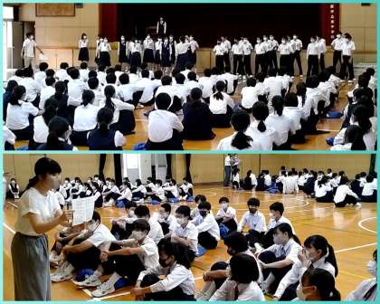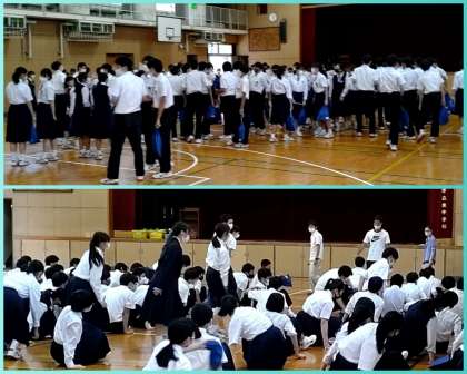 3年生は、25日(月)に予定されている文化発表会の合唱コンクールに向けて、並び方や入退場の流れ・方法について確認しました。