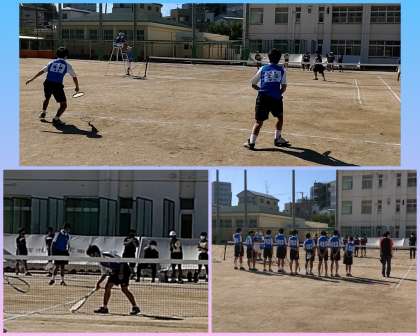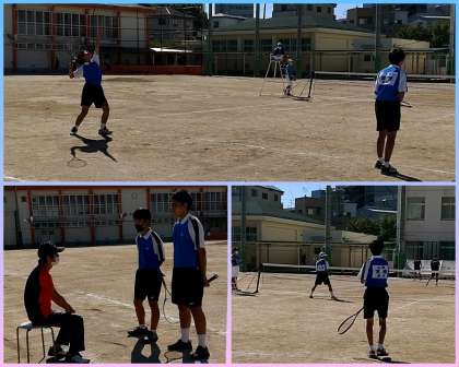 今日は、大阪市新人大会(男子団体の部)に出場しました。 初戦は瓜破西中学校との試合。結果は惜しくも1-2で敗れてしまいました。初戦で負けてしまいましたが、試合の流れや応援の仕方、会場校での過ごし方を知るなど、次につながる良い経験ができました。