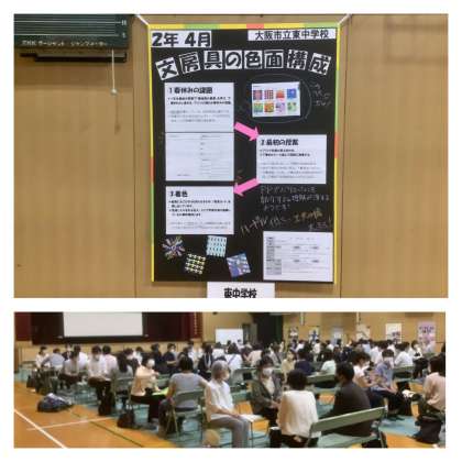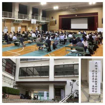 大阪市立の130中学校の教員で組織されている研究会が、17の部に分かれての年に1回の研究発表会がありました。集合研修だけでなく、事前に録画した画像を視聴するオンデマンド型やTeamsを使ってのオンライン研修など、研究発表の内容もさることながら、コロナ禍の期間での準備期間を経て、研修のスタイルも創意工夫を凝らされた研究発表会です。本校では美術科の先生方が会し、熱心に研鑽を積んでおられました。壁には専門委員の先生方が自校の実践を報告されており、さすが美術科に先生方で、秀作ばかりです。コロナ禍において、子どもたちの学びを止めないだけでなく、大阪市の教員は自己研鑽も止めることなく進めています。