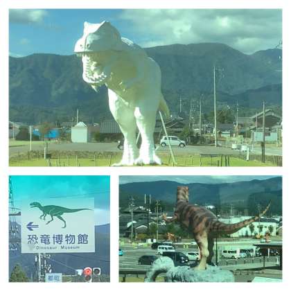予定より早く到着です。路端に恐竜のオブジェがお出迎えです。