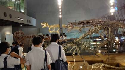 恐竜博物館の見学です。みんな興味深く見学しています。