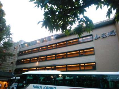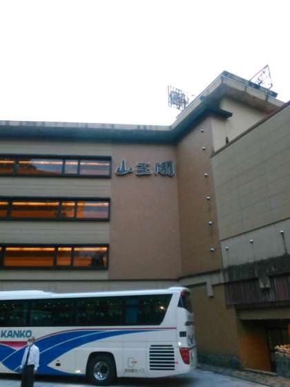 今日は、学校を出発して福井県に入り、「千鳥苑」で昼食をとった後、「福井県立恐竜博物館」の自由見学とお土産購入を行いました。そして、先程、宿舎「吉田屋山王閣」に到着しました。