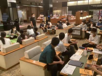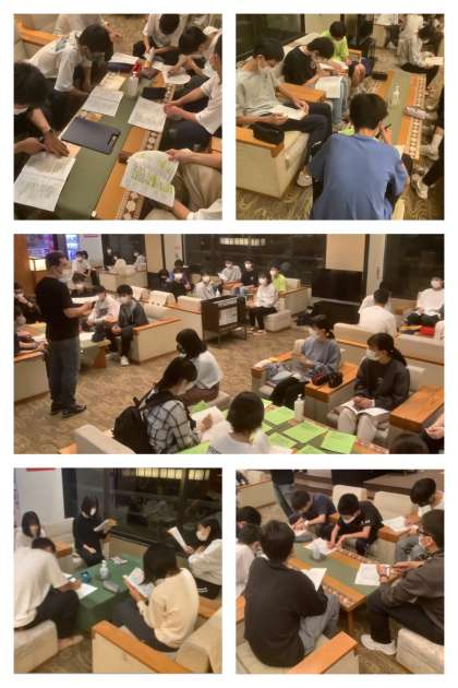 室長会議で、約30人の室長が1日目の振り返りと明日のスケジュールの確認をしました。さすがに室長。学年主任の先生の話を真剣に聴き、メモを取っていました。この後、部屋に戻って、班のメンバーに伝達し、明日の活動に備えます。室長の皆さん、よろしくお願いします。