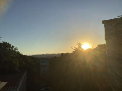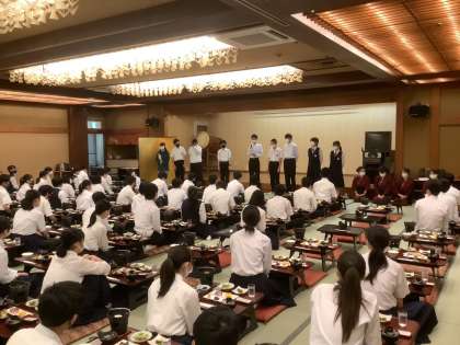 太陽が顔を出してきました。生徒たちは、食事係からのメッセージに続いて「いただきます」。黙食を徹底して食事をいただきました。