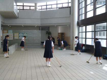 や校舎周りを、クラブ部員たちによるボランティア清掃が、毎朝8時から