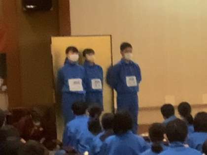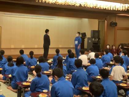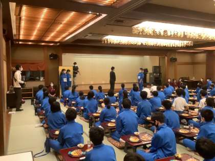 朝食に先立って、退館式を行いました。よく通る声で修学旅行実行委員のメンバーが、司会進行と代表挨拶を行い、ホテルを代表して社長さまのお言葉をいただきました。3日間、ありがとうございました。