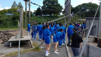 ひこねスカイアドベンチャーに着きました。晴天の中さまざまなプログラムを行います。