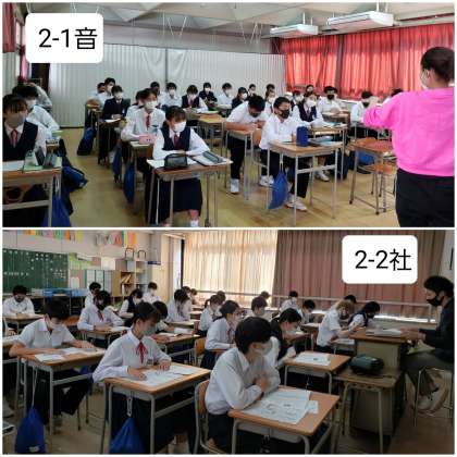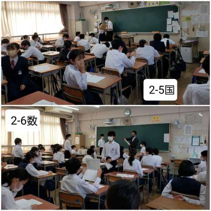 さて、本日の授業のようすです。5教科の授業では、先週行われた中間テストの返却が行われています。