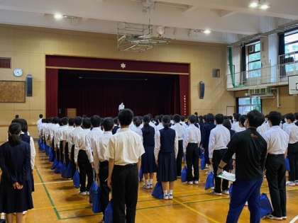 今日から後期の学級代表で学年集会を運営します。朝から号令の練習などを行っていました。