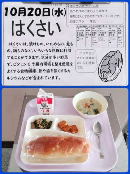 はくさいのクリーム煮は具だくさんのうえ、とてもからだがあたたまります。