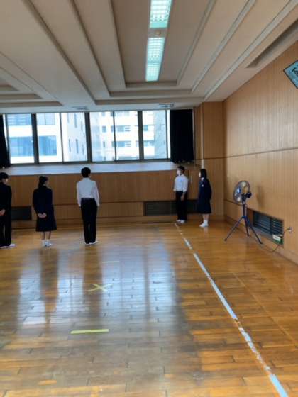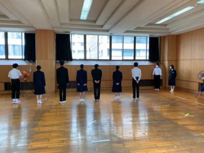 明日は英語のGTECがあるため、学年集会はありませんが、次の集会に向けて多目的室で集会の練習を行いました。