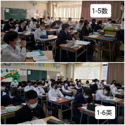 いよいよ来週は各学年とも合唱コンクールとなっています。総合や学活、音楽の授業で歌声が聞こえてきます。さて、本日の授業のようすです。皆さん、頑張っています。