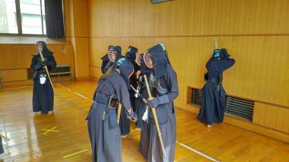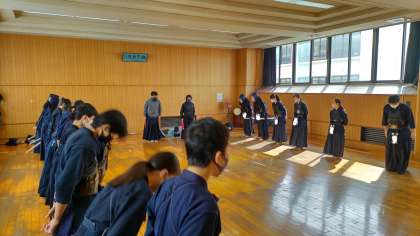 剣道部では、土曜日に大阪市の新人大会に参加し、日曜日には三年生の追い出し稽古を行いました。