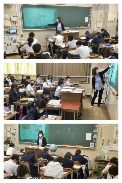 今日の授業公開のもう1つは、1年生の社会。単元は「産業発展と人口増加が急速に進む南アジア」。「人口増加の続く南アジアの国々では、どのような発展を続けているのかを資料などから多面的・多角的に考察する」ことをめあてに、デジタル教科書を使いながら授業が進められています。